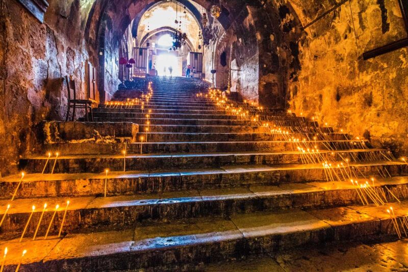スタート地のトルコからイスラエルに向かい、エルサレムにある「聖母マリア墳墓教会」の入り口には