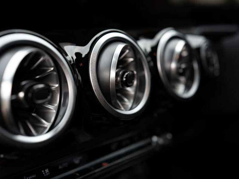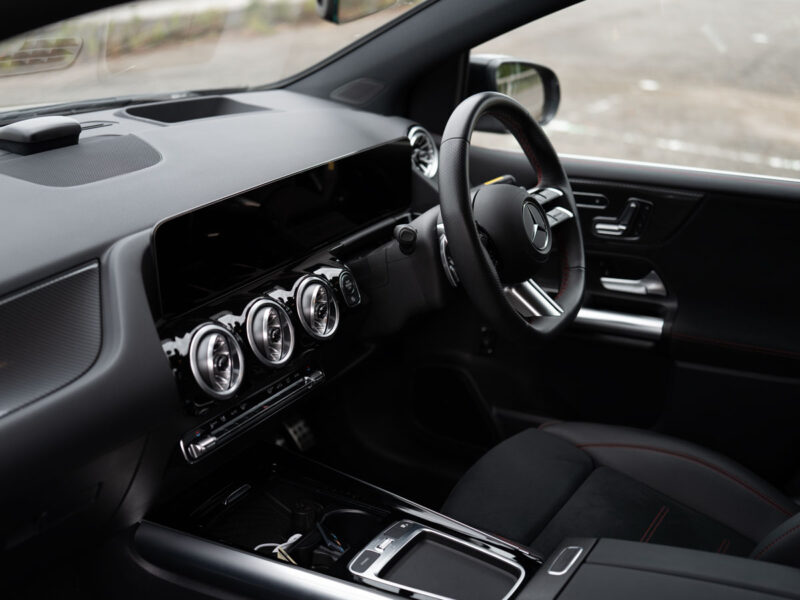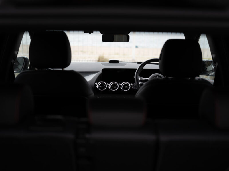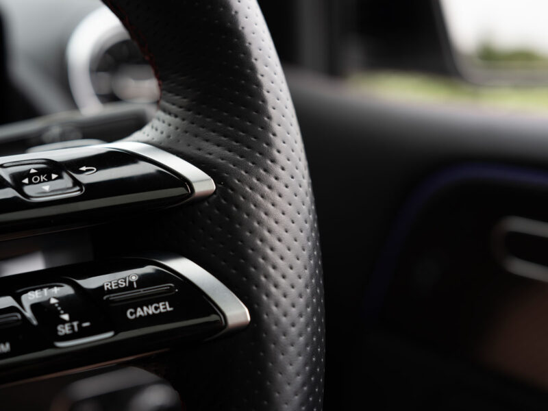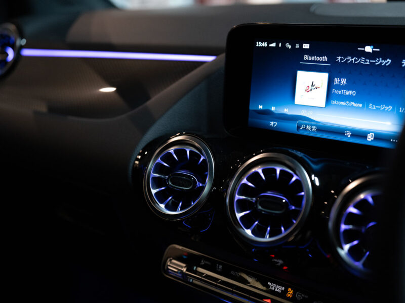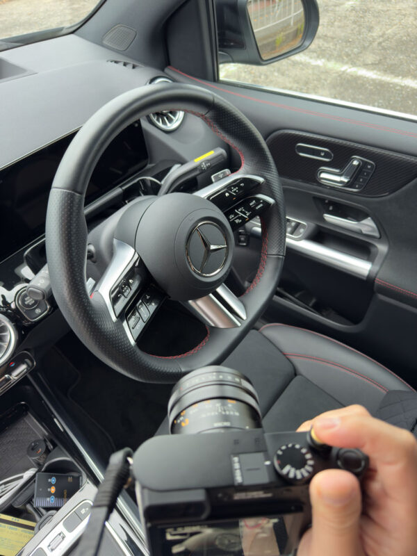 センターコンソールからステアリングのスリーポインテッドスターくらいまでピント部分の線の表現