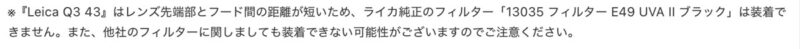 「レンズフィルターを装着すると、付属品である35mmアポズミクロン風レンズフードを